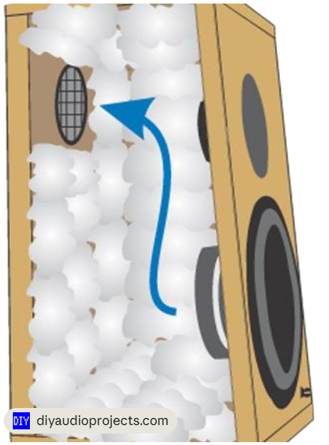 Ce matériau agit comme une résistance acoustique créant une perte de charge par friction qui permet de dissiper une partie de l’énergie sonore et de réduire les résonances internes du système, contribuant ainsi à un amortissement plus efficace de l’enceinte.