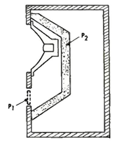 L’évent ne sera pas utilisé comme radiateur alternatif de son. Cela est obtenu en rendant la surface de l’évent très faible et qui doit être muni d'un tissu résistif (P1). Le HP et l'évent sont isolés du reste du volume de l'enceinte par une paroi de tissu acoustique absorbant, souple épais (P2).