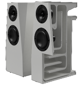 Contrairement à une enceinte classique où le haut-parleur est plaqué contre la face avant, dans une enceinte RJ, le haut-parleur est monté sur une contre-plaque interne.