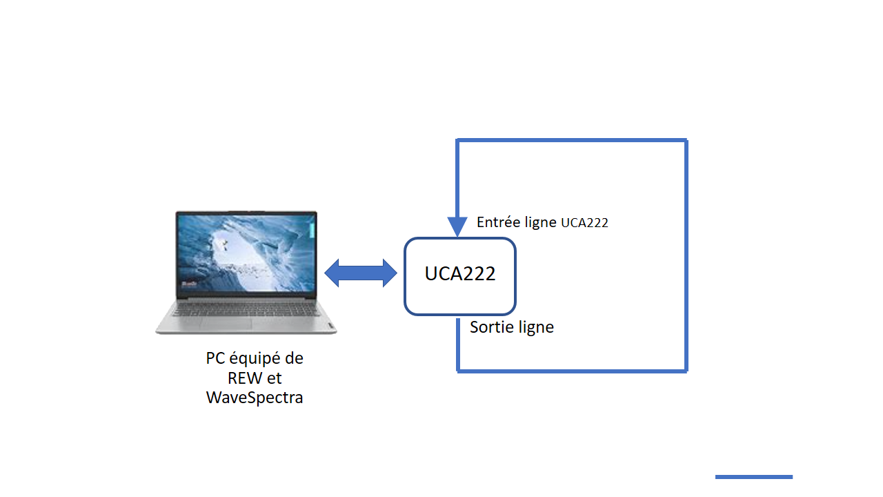 • Avant de cliquer sur "Start" dans REW ou WaveSpectra : Vérifiez bien que le volume de sortie de UCA222 (action molette) est presque au minimum.