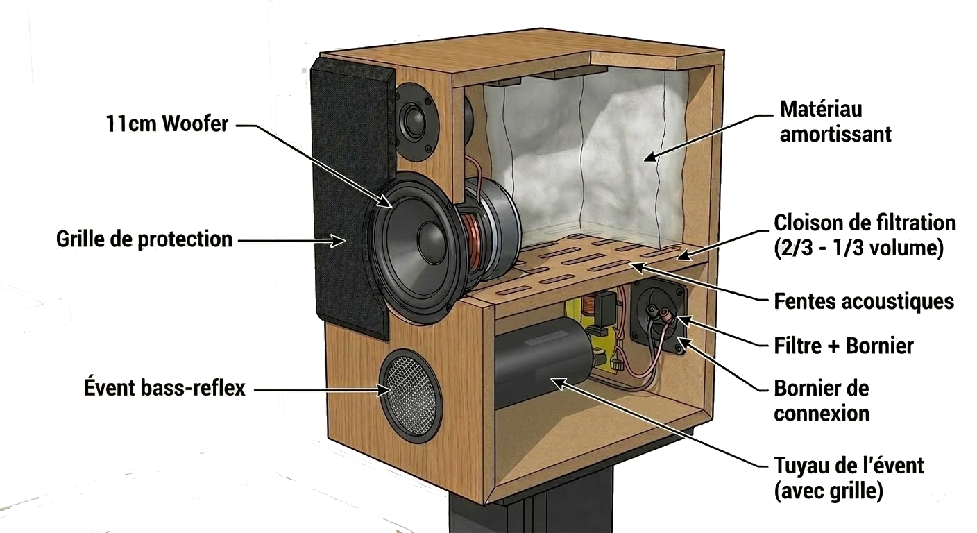 Les deux volumes d’un double résonateur (DBR) sont presque toujours inégaux, et ce n’est pas un choix esthétique : c’est une conséquence directe de la physique des deux résonances, de la manière dont elles interagissent avec le haut-parleur et du rôle très différent que joue chaque chambre dans le système.