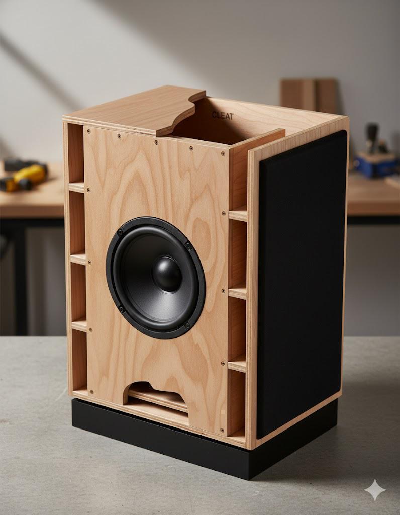 Contrairement à une enceinte classique où le haut-parleur est plaqué contre la face avant, dans une enceinte RJ, le haut-parleur est monté sur une contre-plaque interne.